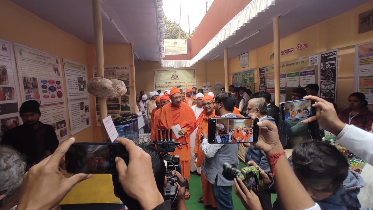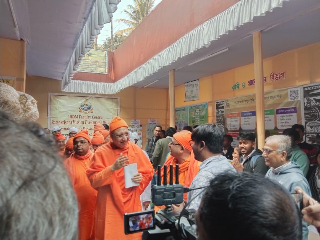 On the occasion of the 57th Annual Celebration and Sri Ramakrishna Mela & Exhibition at Ramakrishna Mission Ashrama, Narendrapur, the Sasya Shyamala Krishak Vigyan Kendra (KVK) of Ramakrishna Mission Vivekananda Educational and Research Institute (RKMVERI) exhibited at the Ramakrishna Mela and Exhibition. The event was held from January 17 to 20, 2026, within the ‘Mandir Gate’ premises of the Ashrama, where the KVK showcased its agricultural work and innovations as part of the larger annual fair.